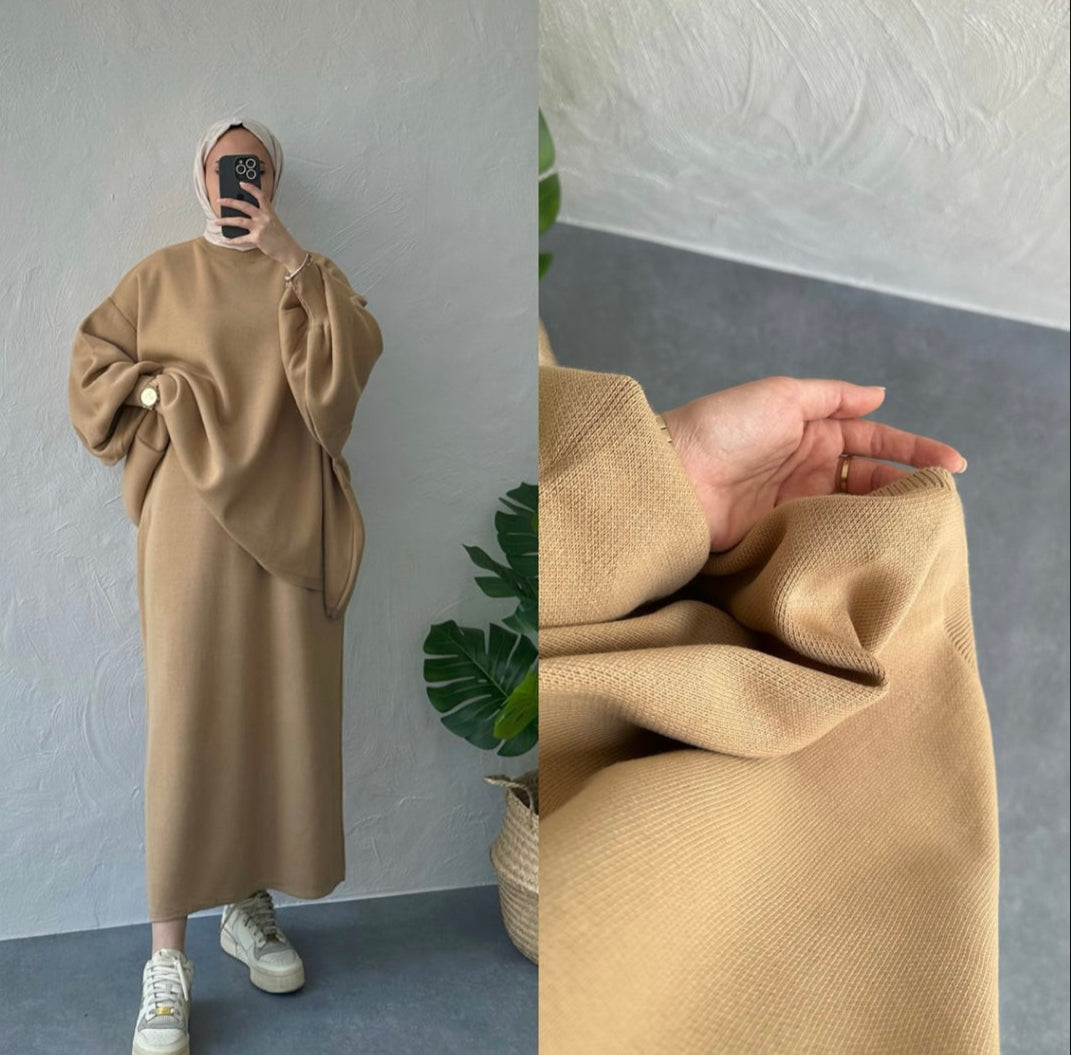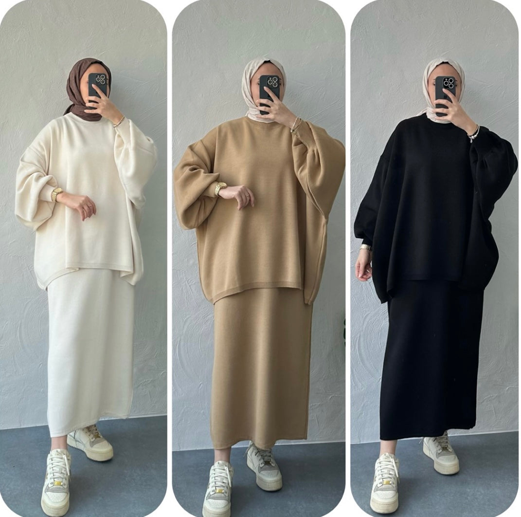 Our best-selling winter knit set is a customer favorite for a reason. This cozy two-piece features an oversized long-sleeve top and a matching maxi skirt, made from soft, stretchy tricot for all-day comfort. Perfect for chilly days, it offers a relaxed fit, complete coverage, and a stylish, modest look. A winter essential you’ll reach for again and again.
